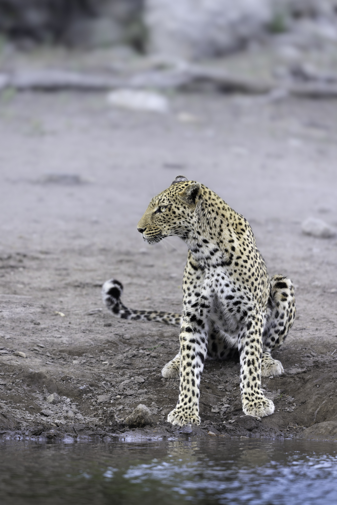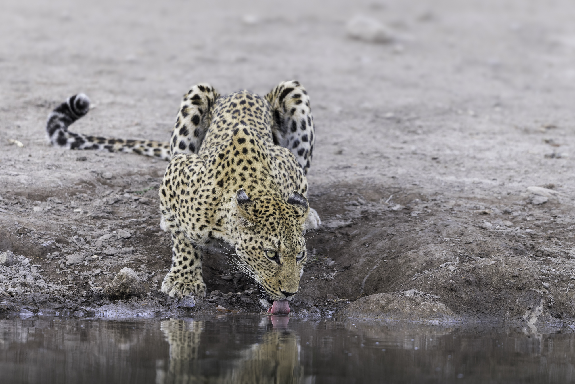 Our first afternoon we decided to go and relax at the stunningly beautiful Old Man’s waterhole. A few minutes after arrival a very relaxed female leopard made her appearance. She approached the waterhole with caution and then proceeded to have a lengthy drink at the waterhole, in the perfect afternoon light. After she had a drink, we decided to follow her for a few hundred meters until she disappeared into the thickets. What a start!