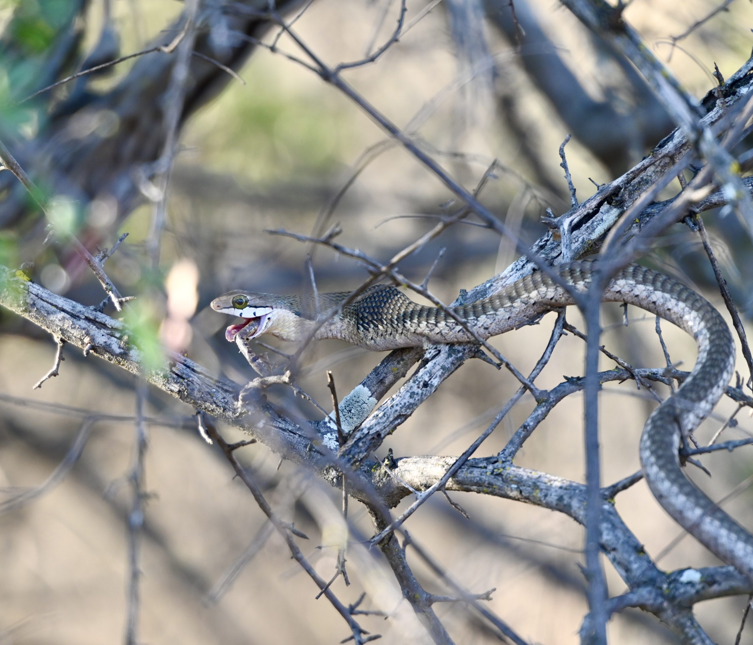 “One afternoon, we watched a boomslang mid-hunt. These snakes are usually shy, but this one was out in the open with a frog’s leg still hanging from its mouth. It noticed us, paused, and then disappeared into the trees. Quick, quiet, and efficient. Nature doing what it does, even when it’s a bit uncomfortable to witness.