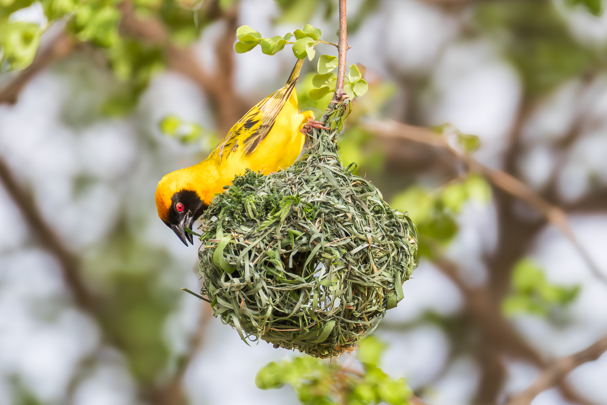 Then there are the southern masked weavers. They do not change their attire for the occasion, but they make up for it by becoming the craftsmen of the bush. The males weave intricate nests with great determination, hoping their chosen female will approve. Some even build several nests so she can select the one she finds most promising.